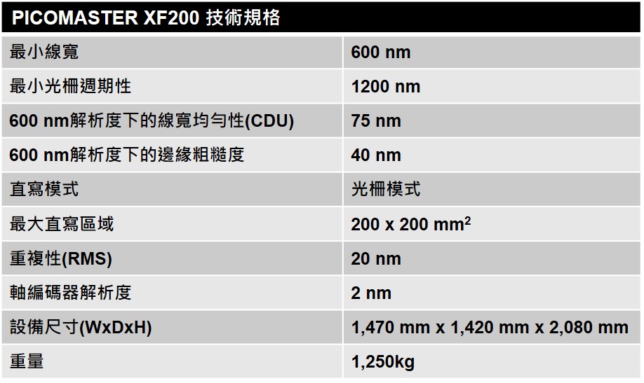 0.6 μm 解析度下寫入速度高達 560 mm²/min