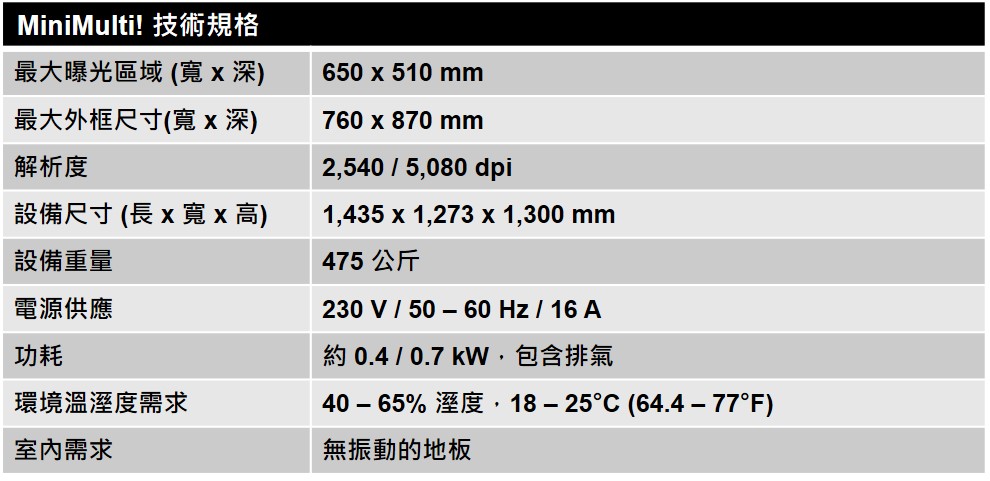- 可依應用客製化,如棕片、網版、凸版、柔板、凹版、平版等。