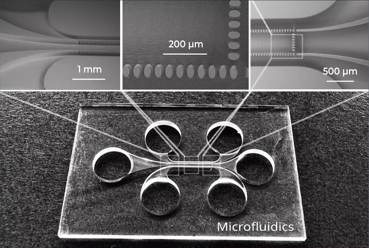 選擇性雷射蝕刻 (SLE) 是一種減材雷射技術,可以製造微米精度且複雜形狀的 3D 玻璃零件。該技術由兩個製造步驟組成:飛秒雷射改質和化學蝕刻。緊密聚焦的飛秒雷射光束會造成雷射光束焦點內透明材料的變化。透過在空間上移動雷射焦點,明確的結構以逐點的方式改質基材。然後,將樣品浸入蝕刻液中,蝕刻掉雷射修改的區域。